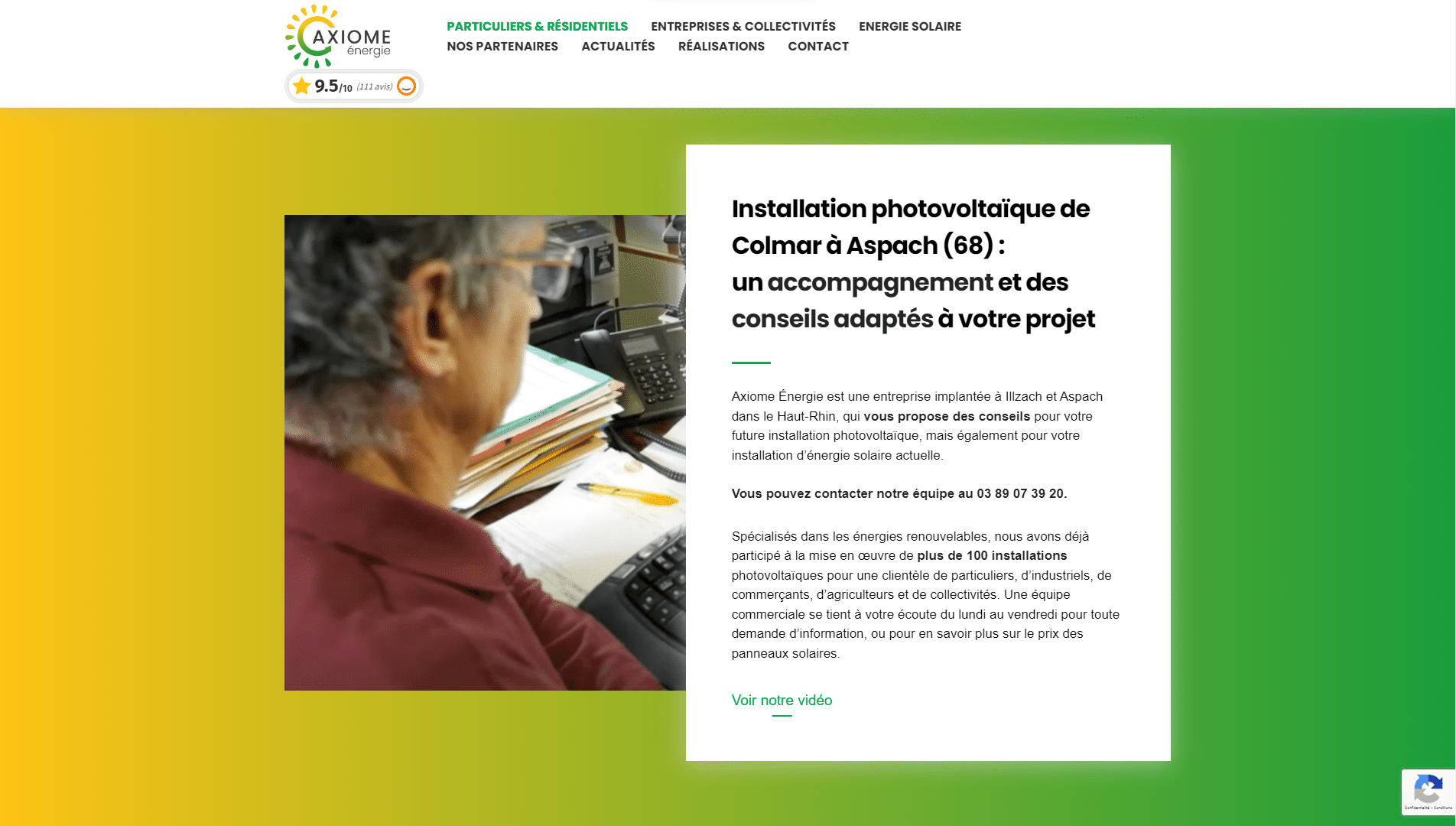 Ce site leur permet également de mettre en avant leurs travaux grâce à un portfolio particulièrement efficace et simple d’utilisation qu’ils pourront alimenter dans le temps. Un widget d’avis client est intégré au site pour voir les avis et en rédiger, cela permet de montrer le professionnalisme d’Axiome énergie.