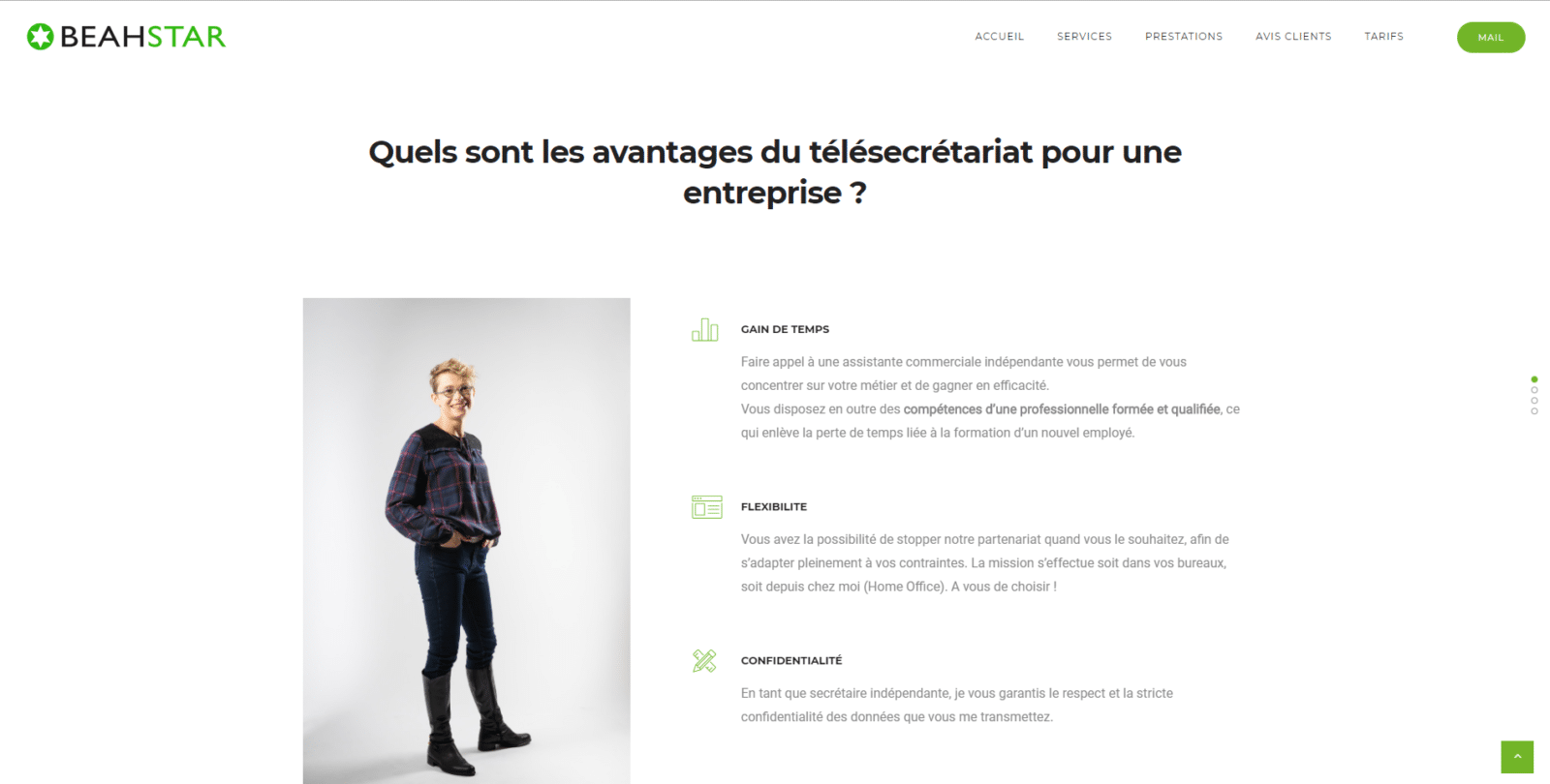 Vous gagnerez en efficacité mais surtout en temps. Vous n’aurez plus besoin de perdre du temps à former un employé avec une assistance indépendante, celle-ci a toutes les qualités nécessaires pour accompagner votre équipe ou vous-même dans différentes tâches. Ne vous souciez pas de savoir si elle sait se servir de vos logiciels de bureautique, Beah Star s’adapte naturellement à toutes les entreprises et elle connait parfaitement les outils de bureautique indispensables à toutes les missions de collaboratrice administrative.