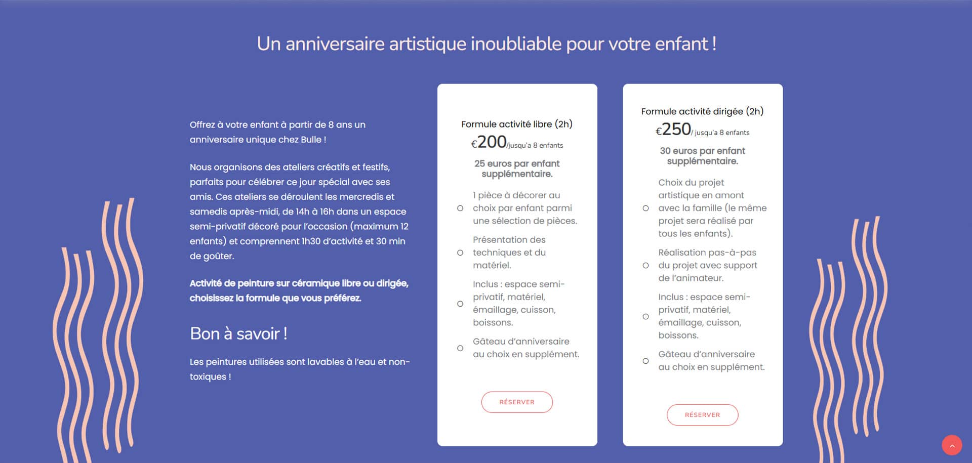 Grâce à cette collaboration, Bulle dispose désormais d’un site fonctionnel, offrant une présentation claire de ses ateliers, services et événements. Le site optimise l’expérience utilisateur, facilitant la réservation d’ateliers et la découverte des offres gourmandes, tout en permettant une meilleure interaction avec les clients.