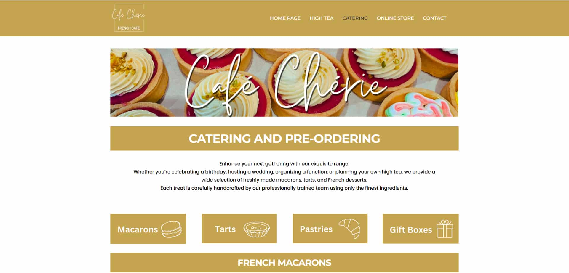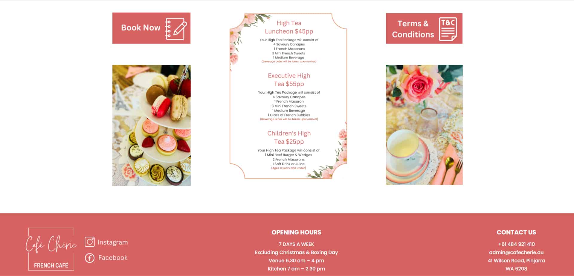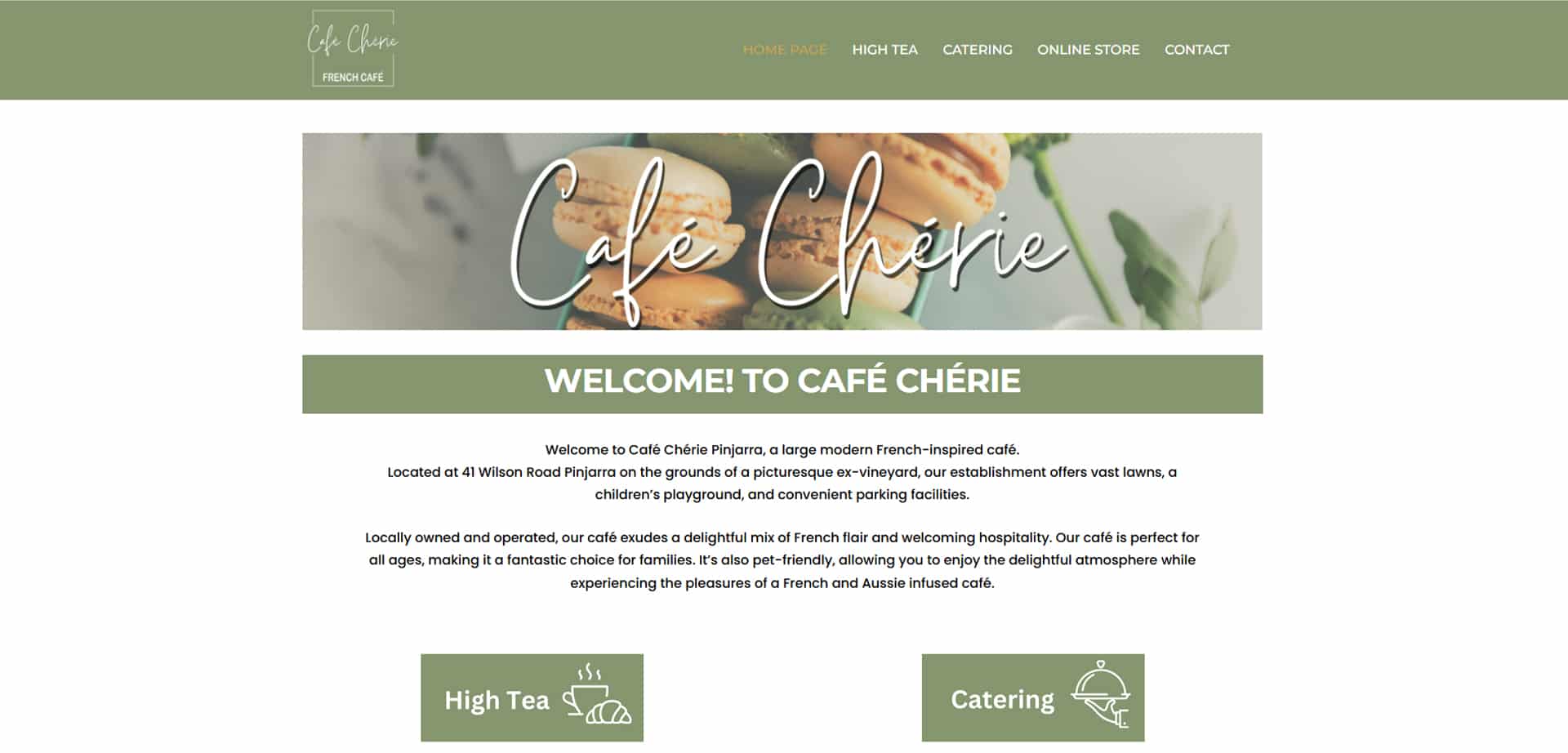 Notre mission pour Café Chérie Pinjarra était d’intégrer leur nouveau site web en assurant une navigation fluide et une performance optimale. Nous avons travaillé à la mise en place du site, en veillant à ce qu’il mette en valeur l’ambiance chaleureuse du café, ses pâtisseries artisanales et ses événements.
