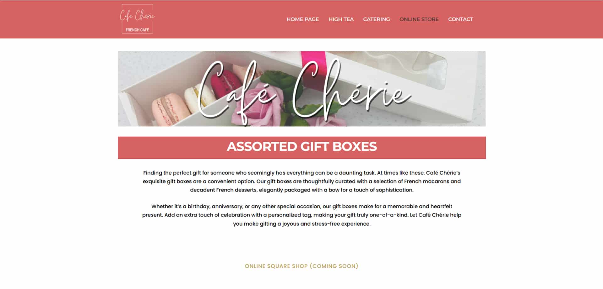 Nous avons également optimisé le site pour le SEO, garantissant ainsi une meilleure visibilité sur les moteurs de recherche et améliorant l’expérience utilisateur. Le site permet désormais aux visiteurs de découvrir facilement les différentes offres, de réserver des événements comme des High Tea et d’explorer les délicieux produits proposés par Café Chérie.