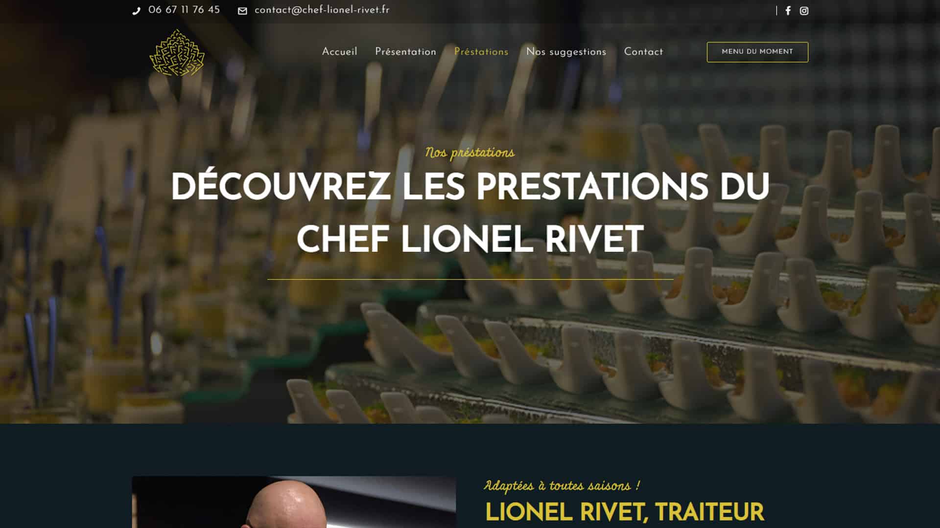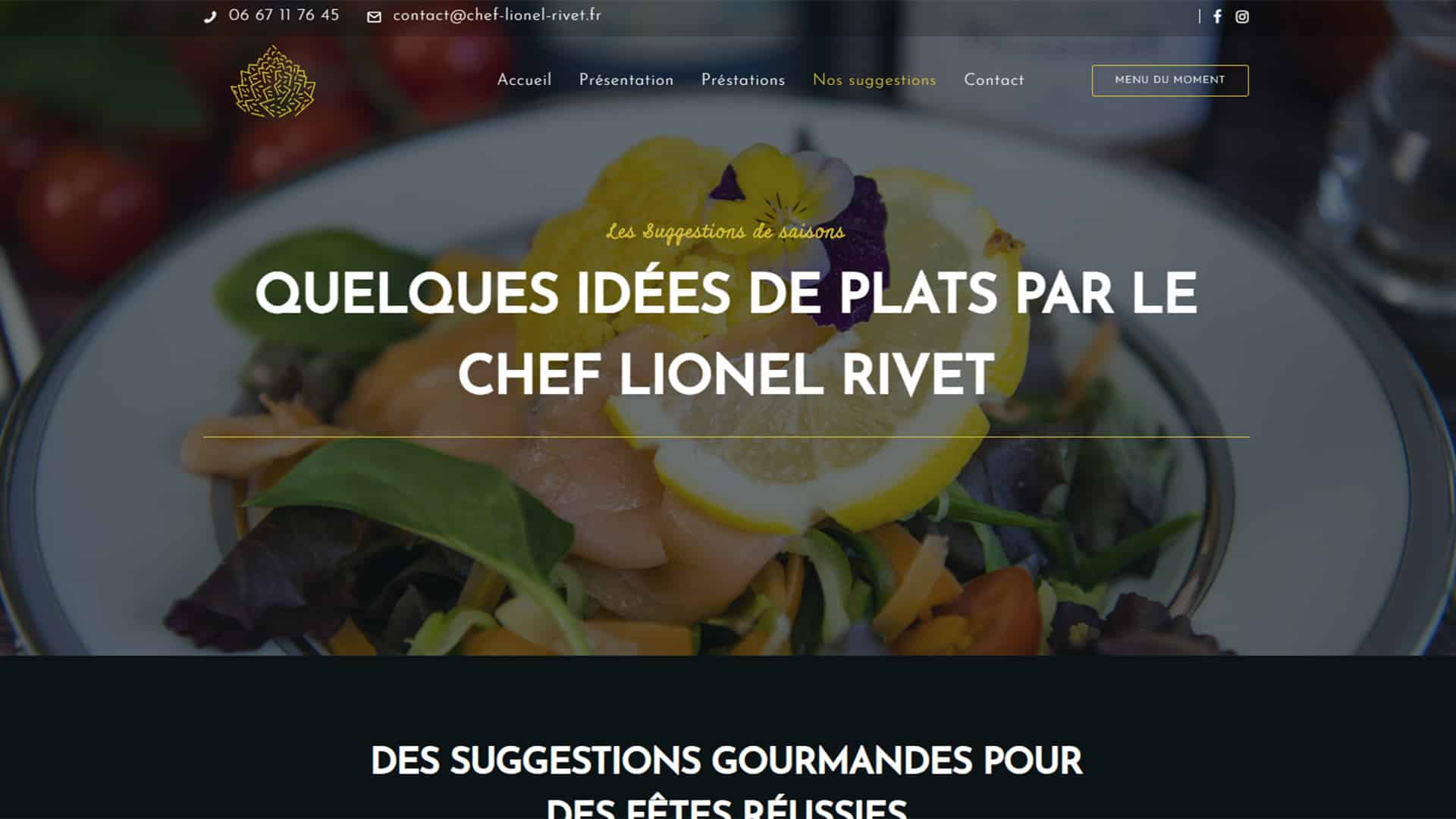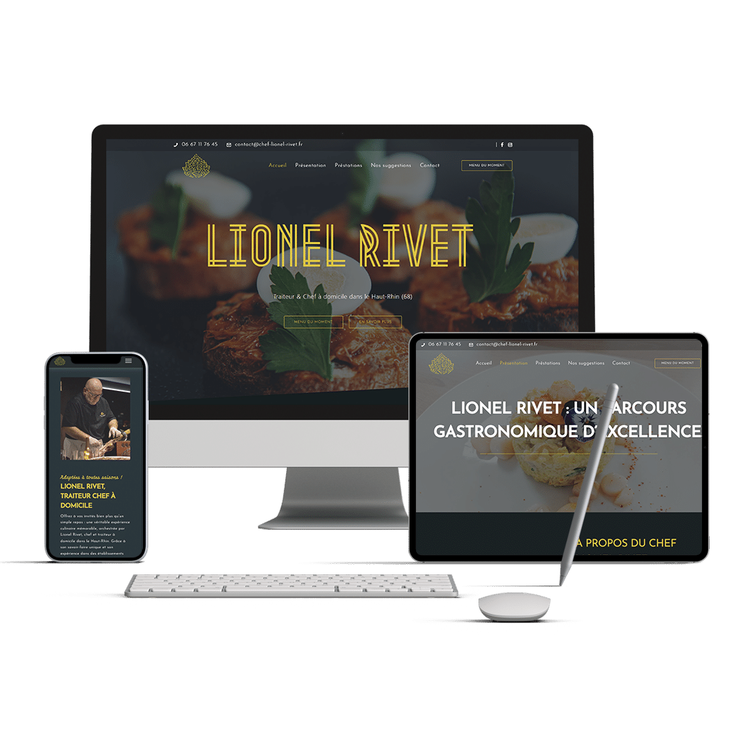 Nous gérons l’hébergement du site du chef Lionel Rivet. Nous l’accompagnons pour garder son site fonctionnel en mettant en place des plugins de sécurité que nous préconisons à nos clients, en gardant à jour le menu et en lui faisant un tuto sur comment le changer. Nous faisons en sorte que son site reste visible auprès des moteurs de recherche en travaillant sur son référencement local.