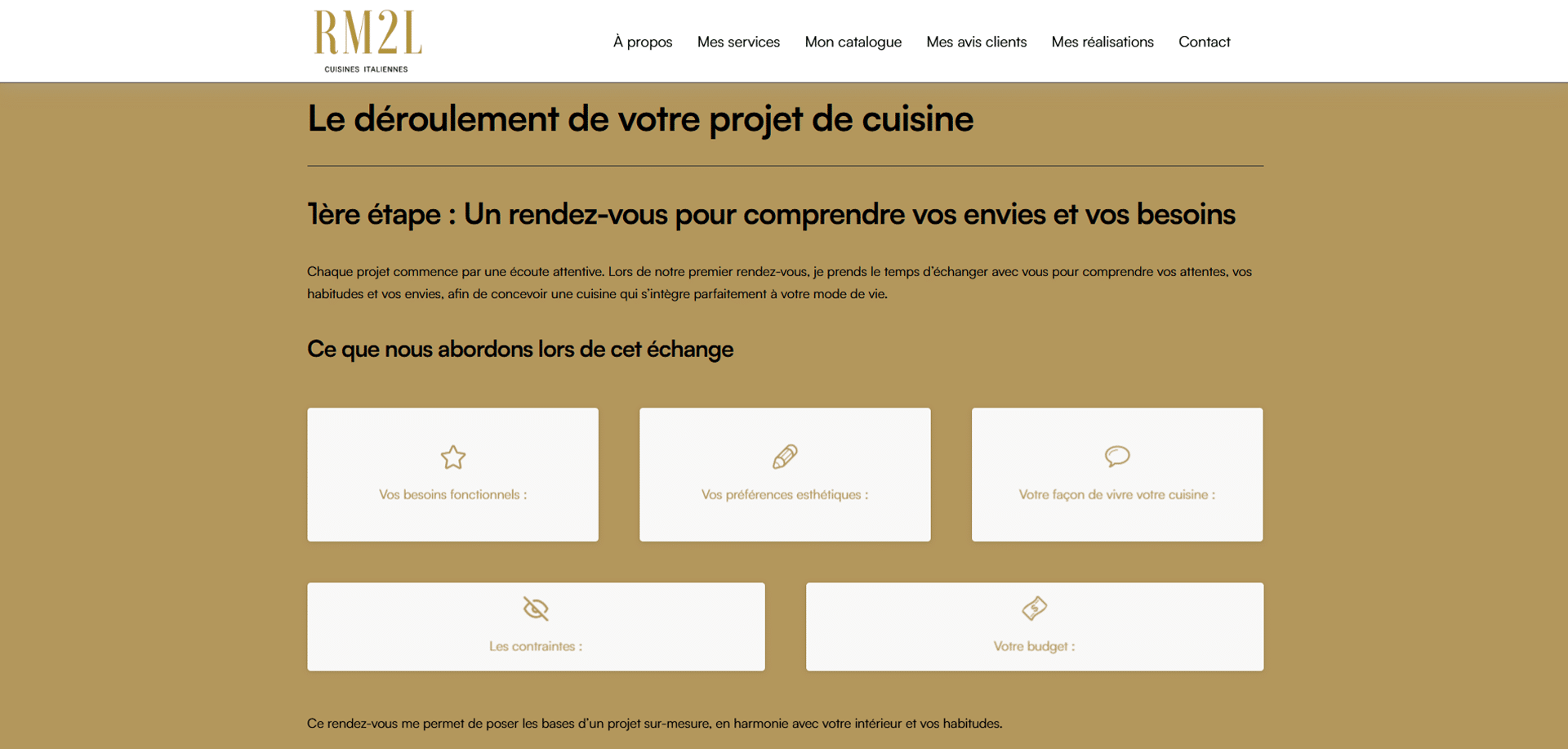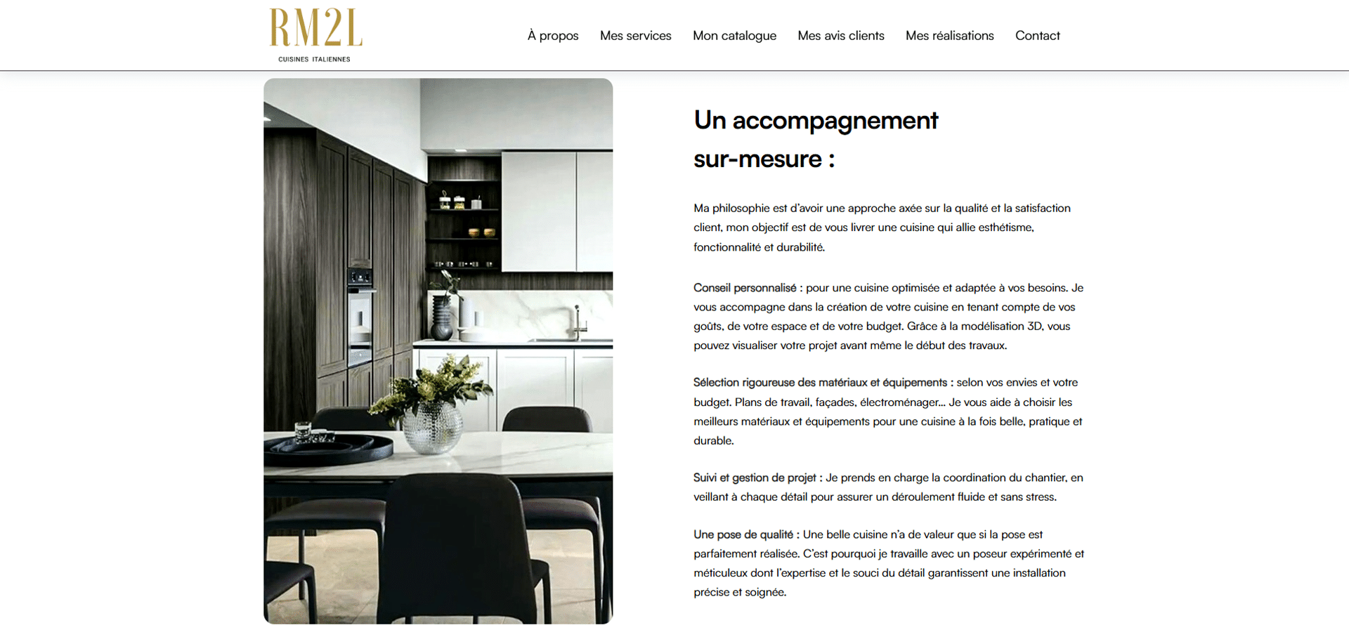 Nous avons accompagné Michaël dans la création de son site vitrine, avec pour objectif de valoriser son approche unique de la cuisine sur-mesure. Notre mission : concevoir un site single page, simple, fluide et impactant, qui présente efficacement ses prestations, son expertise et ses réalisations.