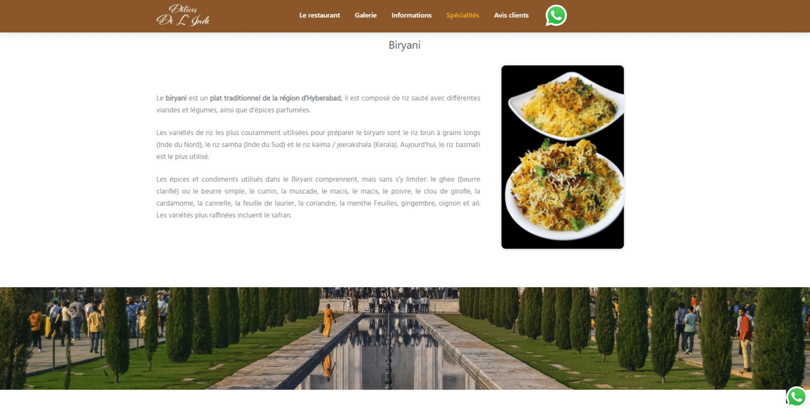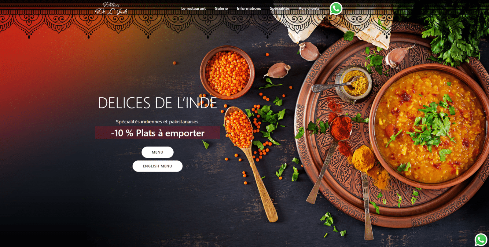 Prévoyez une sortie pleine de saveurs et de parfums pimentée dans une salle climatisée. Initiatique bien souvent, le restaurant « Les Délices de l’Inde » ne donne pas dans la demi-mesure et vous offre un autre regard sur les spécialités Pakistanaises et Indiennes qui vous donnera l’envie d’y revenir et d’en parler autour de vous..