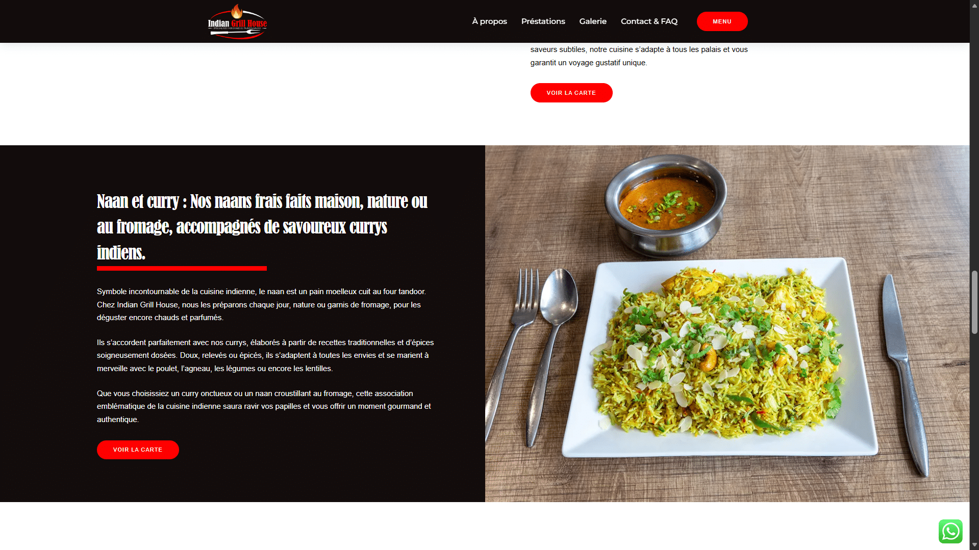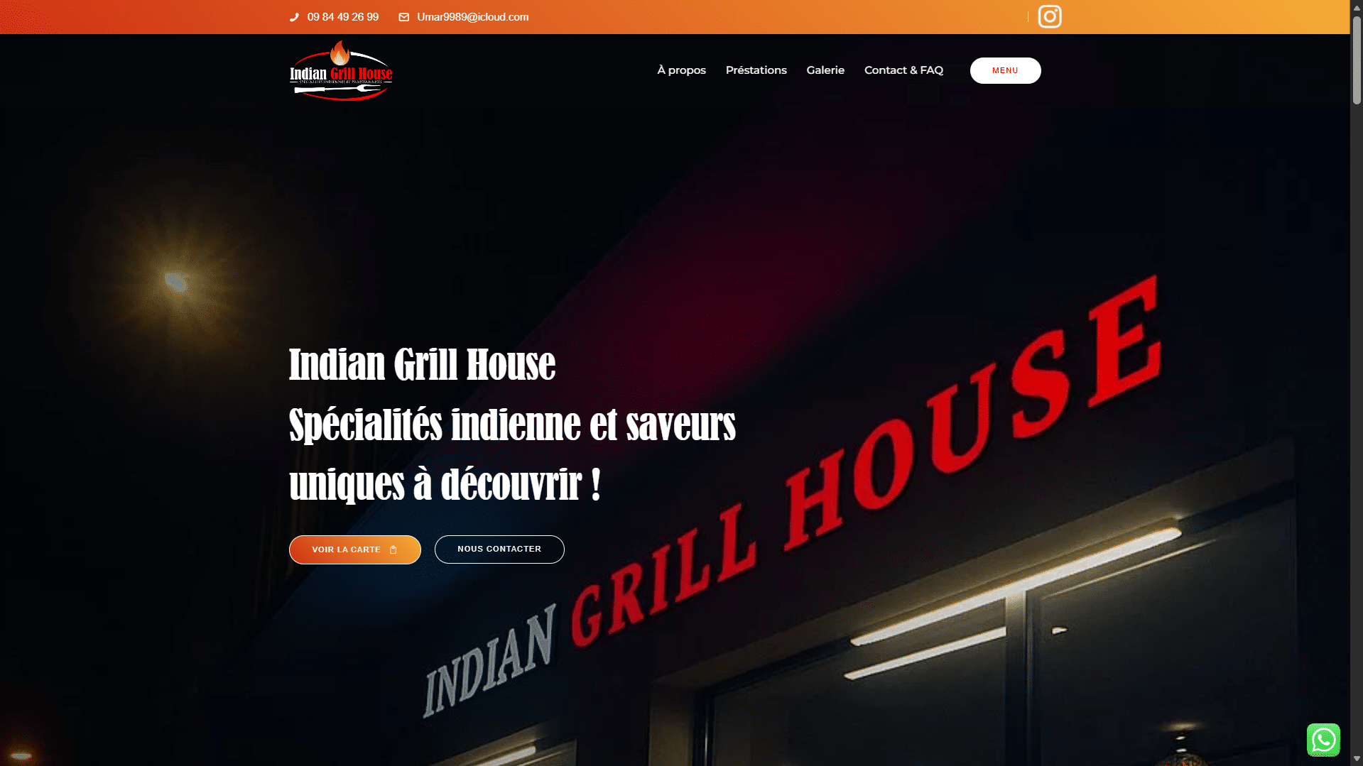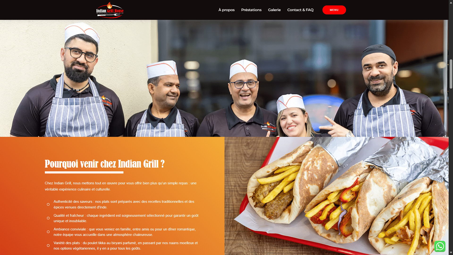Nous avons conçu le site web d’Indian Grill House, restaurant de spécialités indiennes à Mulhouse. L’objectif : offrir une vitrine moderne et conviviale, fidèle à l’esprit du lieu. Ce one-page met en valeur l’histoire du restaurant, ses plats emblématiques et sa carte riche en saveurs. Le design, inspiré des couleurs et épices de l’Inde, reflète l’authenticité et la chaleur de leur cuisine.