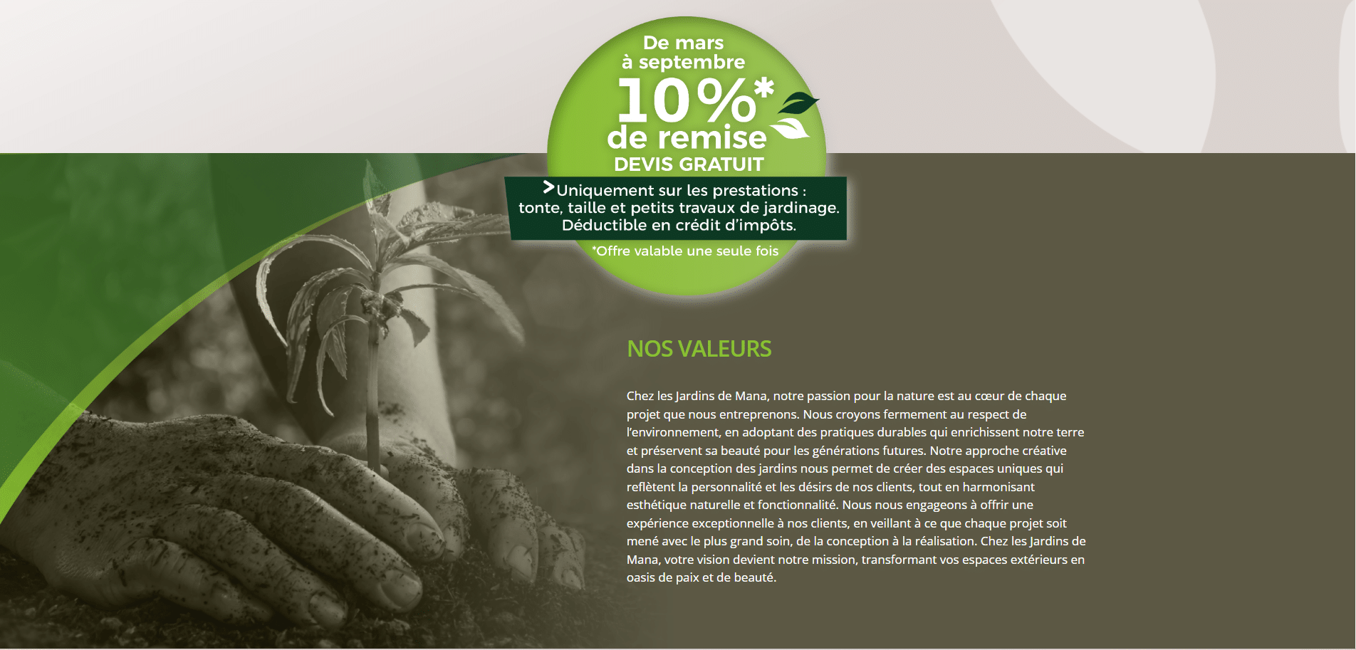 Forte de ses valeurs profondément enracinées dans le respect de l’environnement et de sa passion pour la nature, « Les Jardins de Mana » s’engage à adopter des pratiques durables qui préservent la beauté de la terre pour les générations futures. Chaque projet est ainsi une occasion de créer des espaces uniques qui reflètent la personnalité et les désirs des clients, tout en conjuguant esthétique naturelle et fonctionnalité.