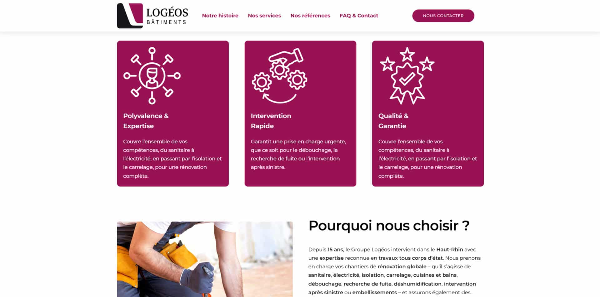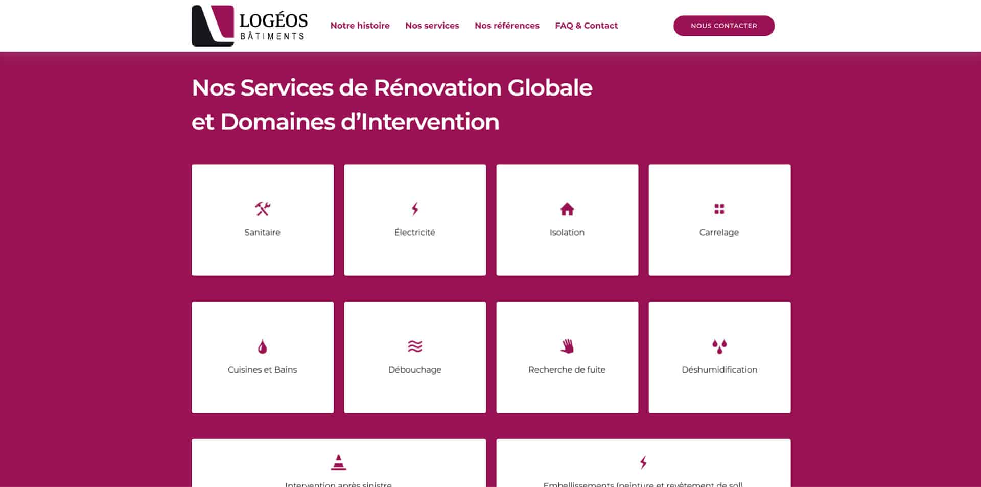 Nous avons accompagné Logéos dans la création de son site vitrine afin de valoriser son expertise en rénovation tous corps d’état dans le Haut-Rhin. Notre mission : concevoir un site moderne, clair et structuré, à l’image de leur savoir-faire, de leur réactivité et de leur engagement qualité.