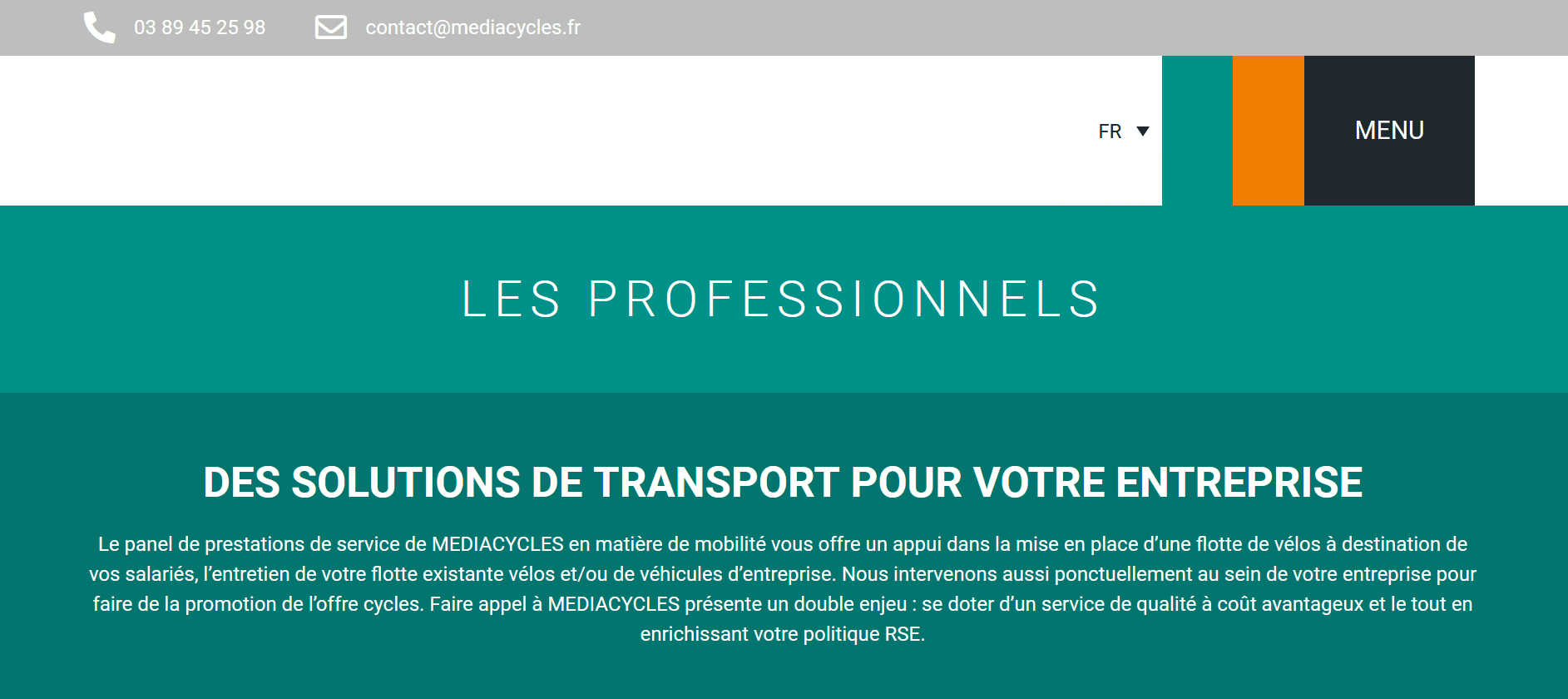 Le site de Médiacycle à été conçu en partenariat avec l’agence Zechoz, une structure spécialisée dans le conseil en communication. Nous sommes fiers d’avoir travaillé main dans la main pour livrer un site complet et attractif. Mediacycle est un acteur majeur du territoire Mulhousien. Il y a ainsi un grand nombre d’éléments à intégrer sur le site.