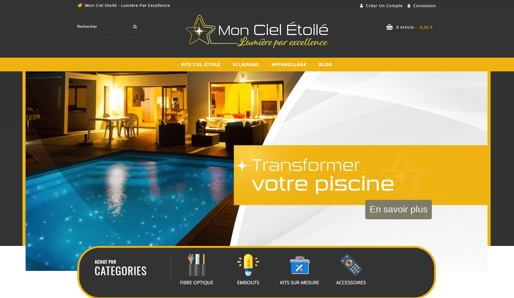 Sur cette boutique en ligne dédiée à l’éclairage à base de Led et fibre optique nous vous proposons un large choix d’articles de qualité conçus pour vous apporter originalité, efficacité et design, à des prix très attractifs.