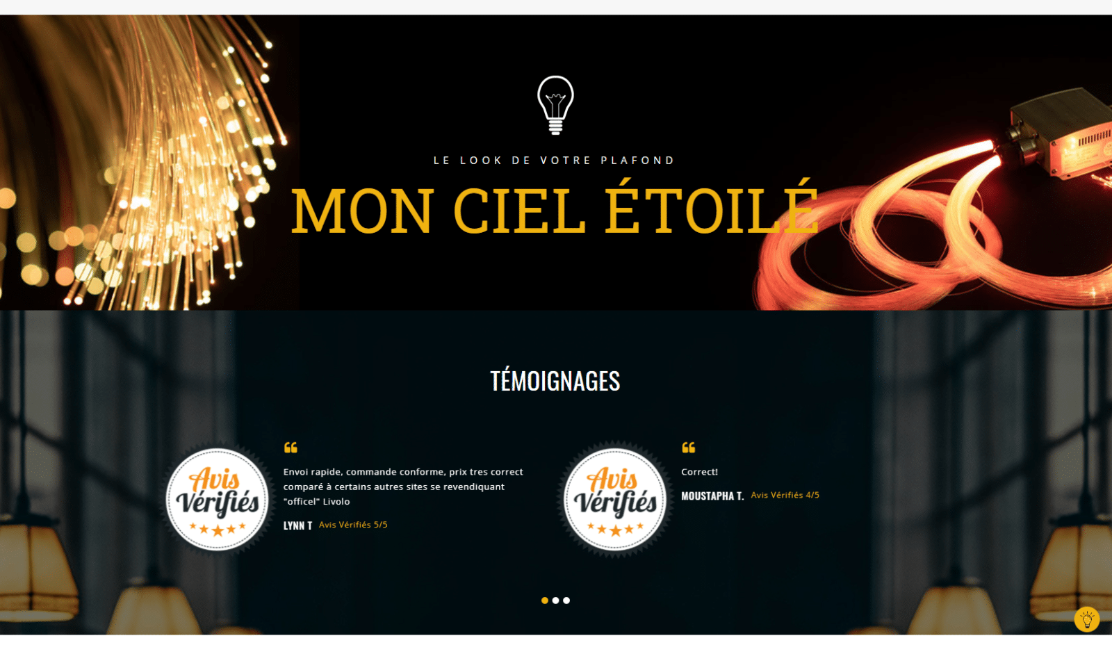 Mon ciel étoilé, plafond d’étoile et fibre optique lumineuse pour un éclairage unique