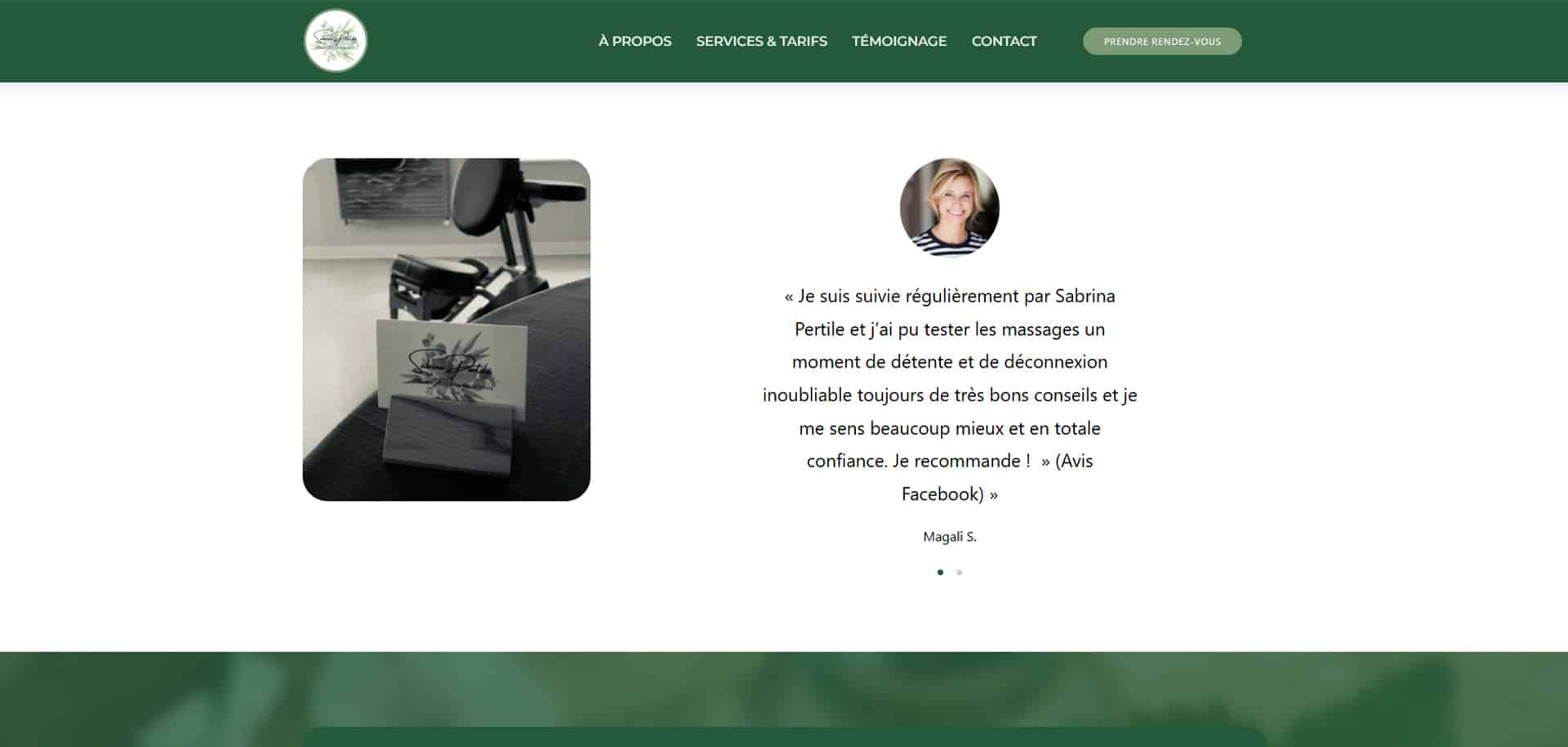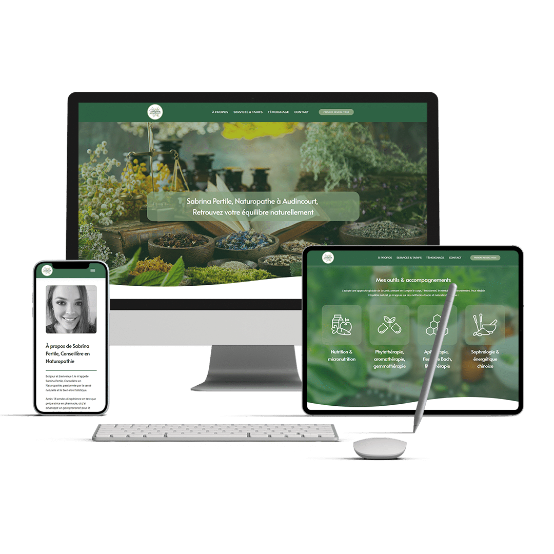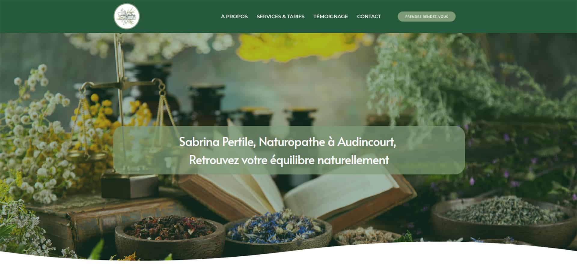 Nous avons accompagné Sabrina Pertile, naturopathe à Audincourt, dans la refonte de son site internet pour en faire une single page claire, moderne et facile à naviguer. L’objectif était de mieux valoriser ses services (consultations, massages, ateliers, conférences) tout en reflétant son approche bienveillante et naturelle du bien-être.