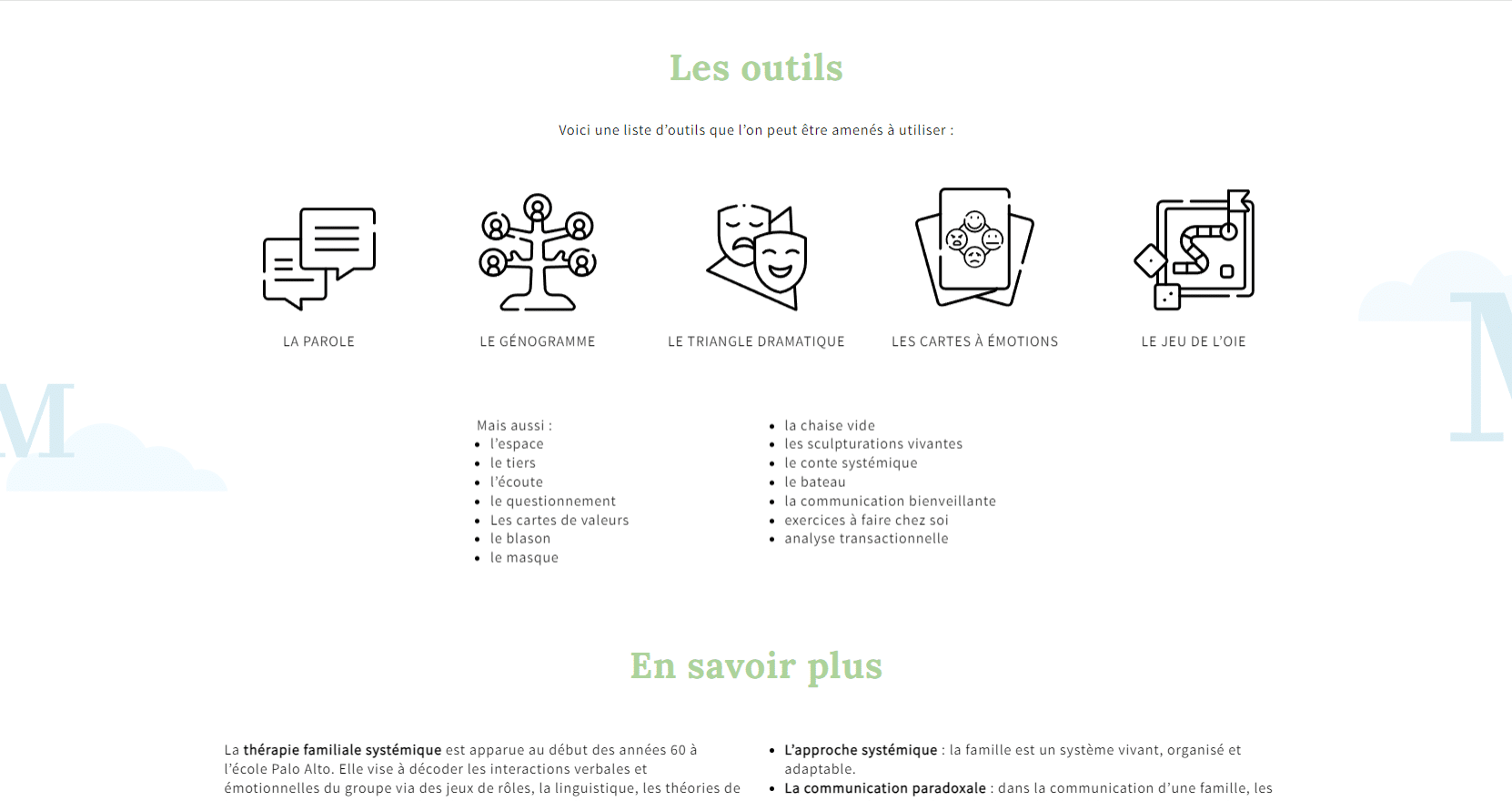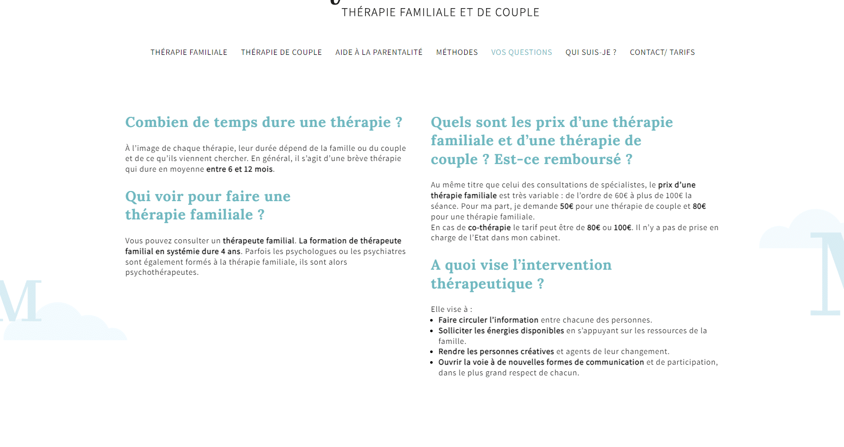 Nous avons récupéré l’hébergement du site de Myriam Monties et nous l’administrons. Nous accompagnons également notre client pour lui montrer comment gérer son site à son tour.
