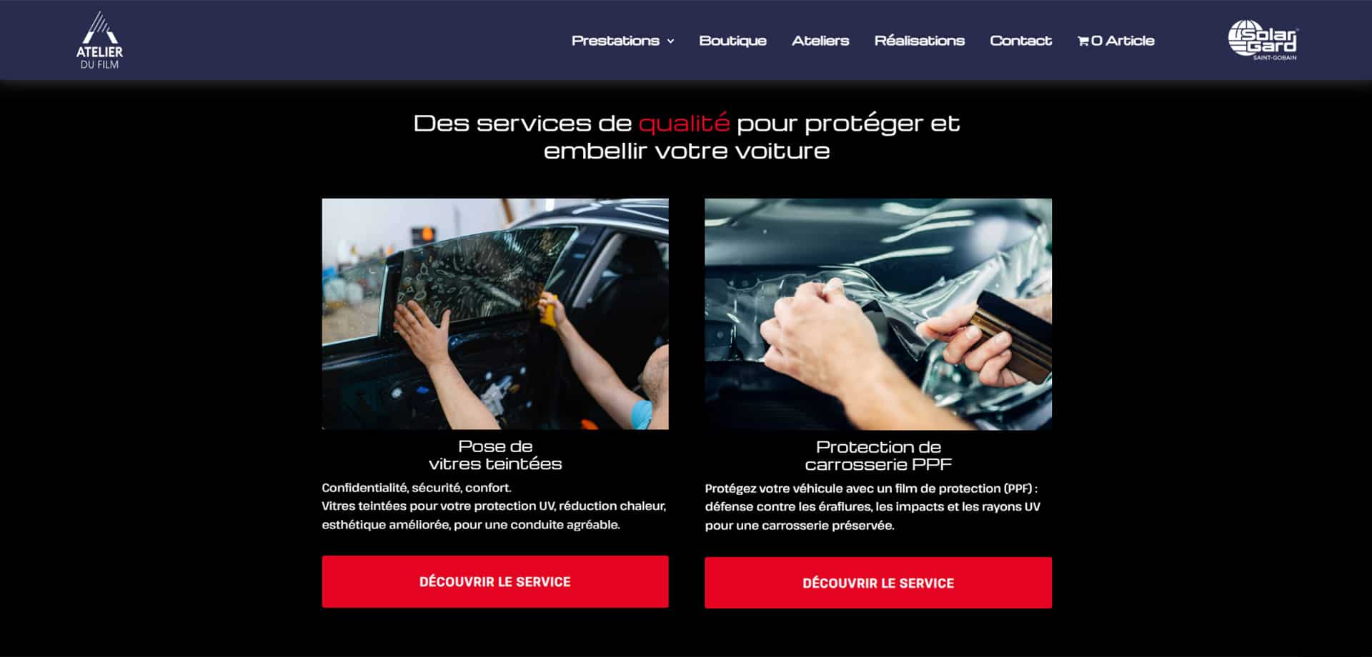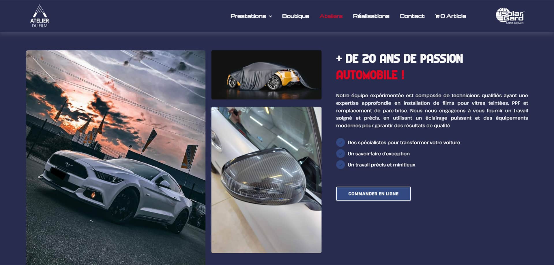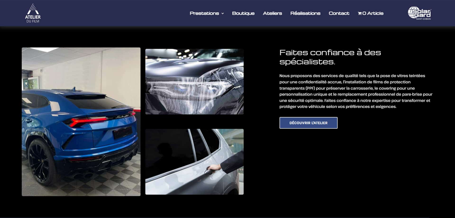 Notre mission pour L’Atelier du Film était de concevoir un site web moderne et intuitif, reflétant son expertise et son savoir-faire dans la protection et la personnalisation automobile. Nous avons travaillé à créer une plateforme fluide et performante, garantissant une navigation optimisée et une mise en valeur efficace de ses services.